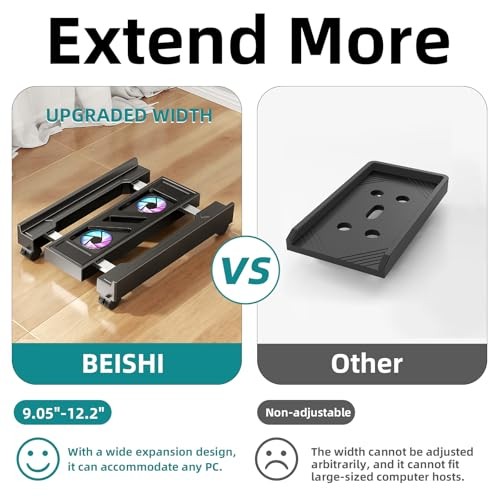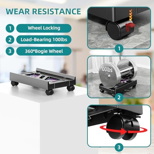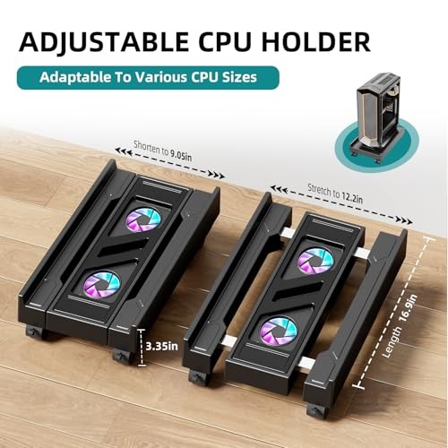 Adjustable Computer Tower Stand with Cooling Fan, Mobile CPU Holder Fan Version