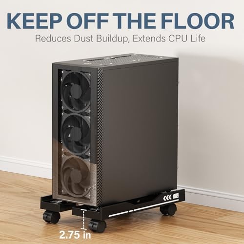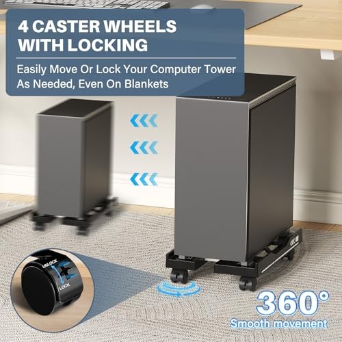 Adjustable Computer Tower Stand, Mobile PC Stand for Floor with 4 Locking Black