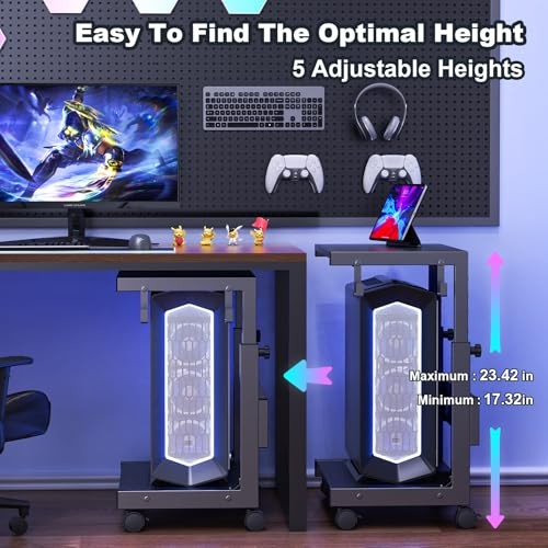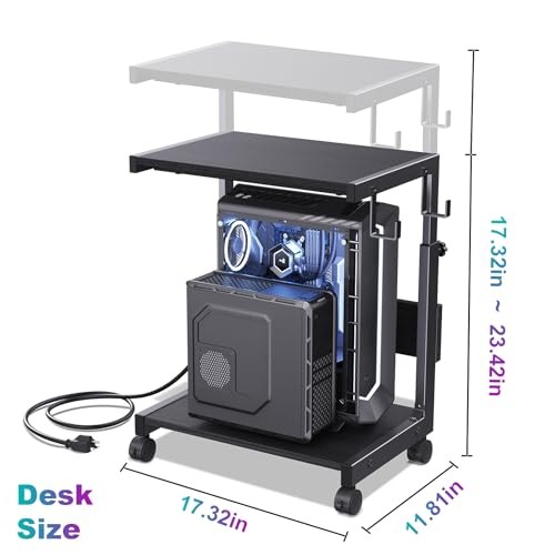 Computer Tower Stand with Charge Station and USB Charging Port - 17.32 Black