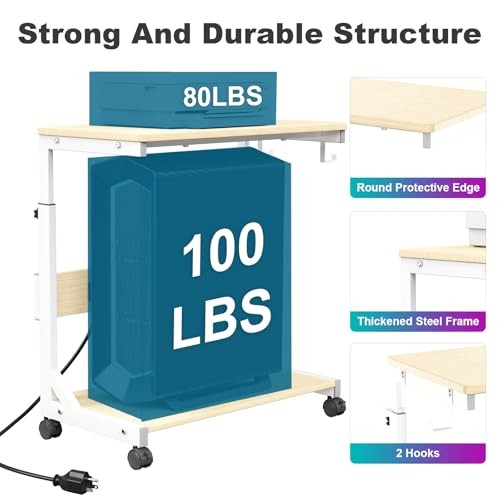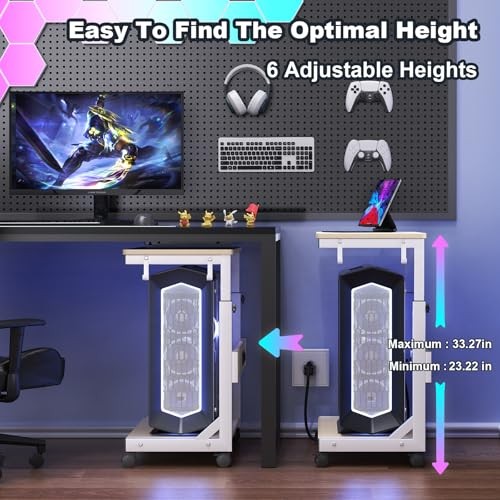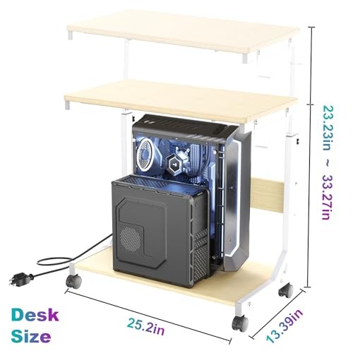 Height Adjustable Computer Tower Stand with Charge Station and USB 25.2 Maple