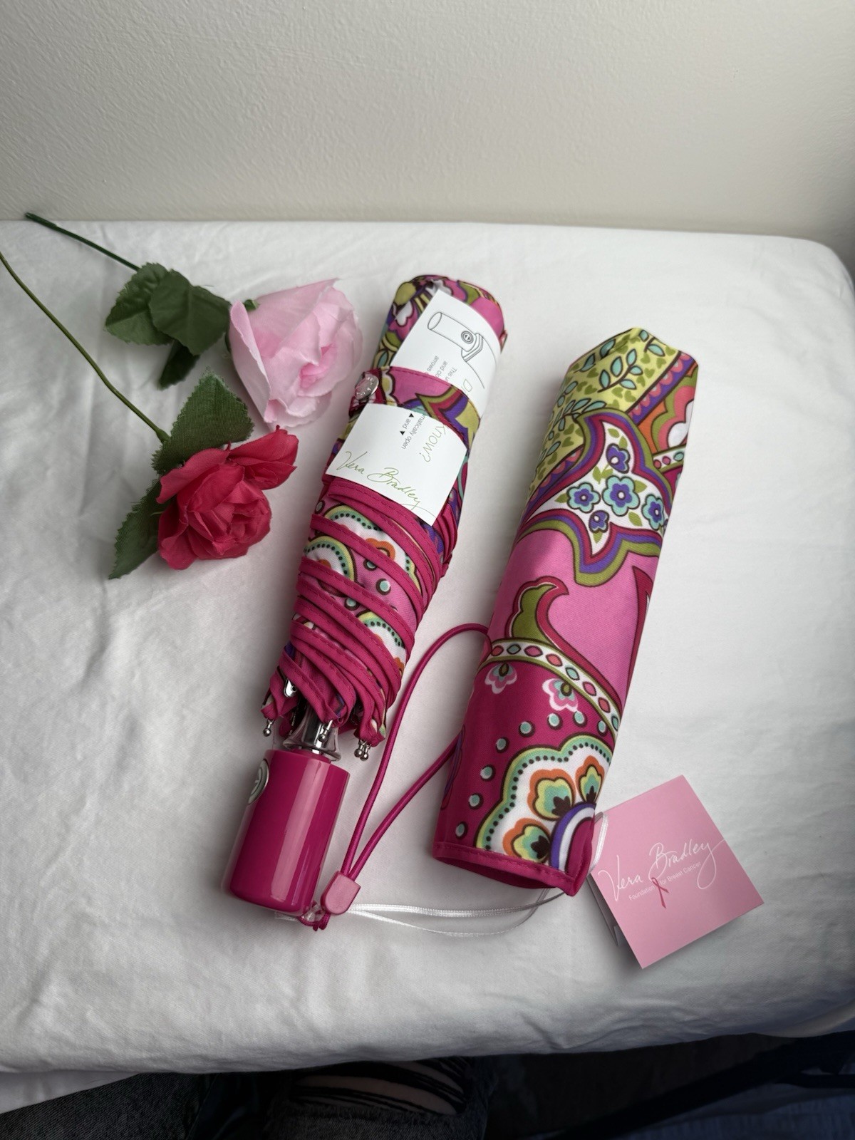 Vera Bradley Pink Swirls Automatic Umbrella RETIRED Rare