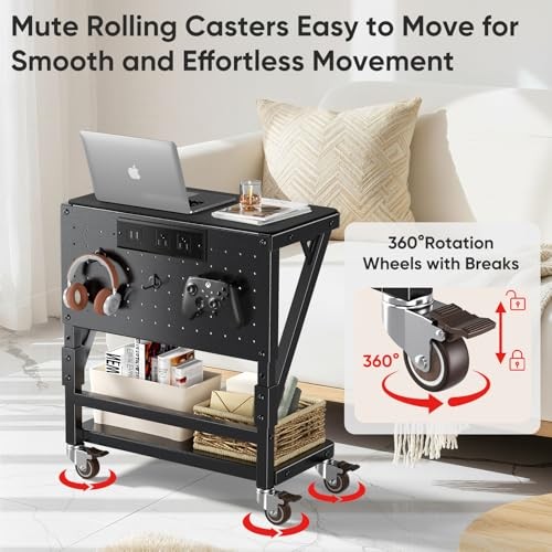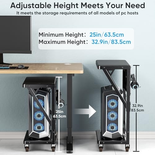 Computer Tower Stand with Charge Station and USB Port,Pc CPU Holder Cart for