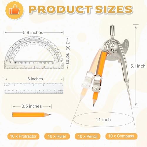 Pieces Geometry Math Set Compass for Geometry Math Compass and Protractor 40