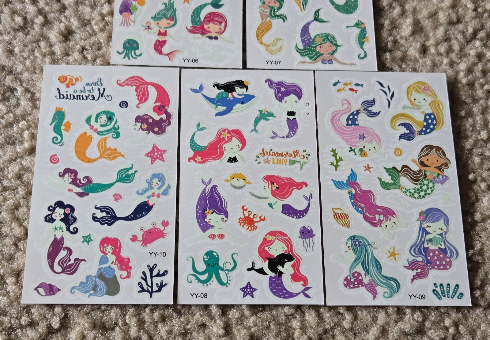 Mermaid Temporary Tattoos Glow in the Dark 5 Sheets Fun Kids Mermaid Ocean Fish