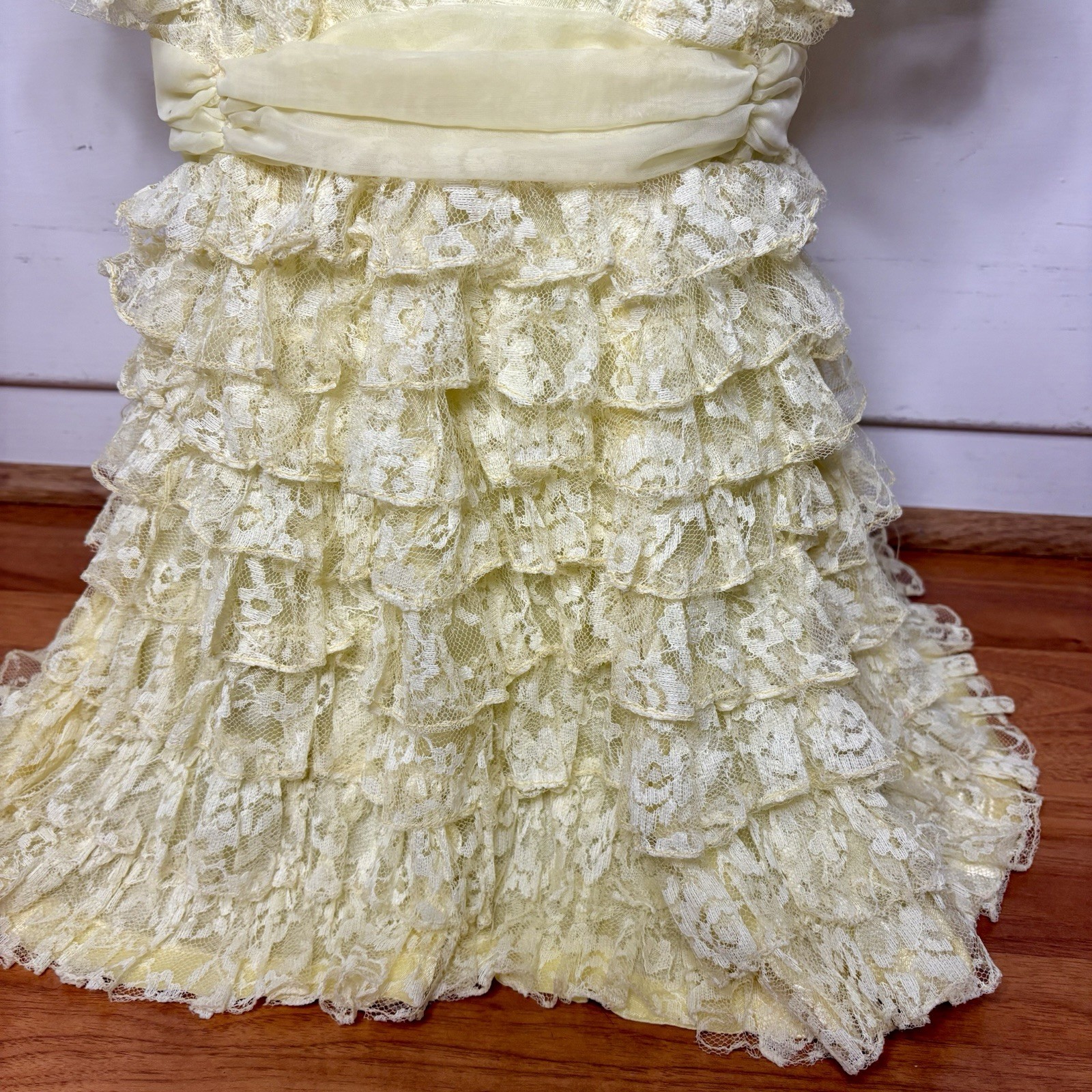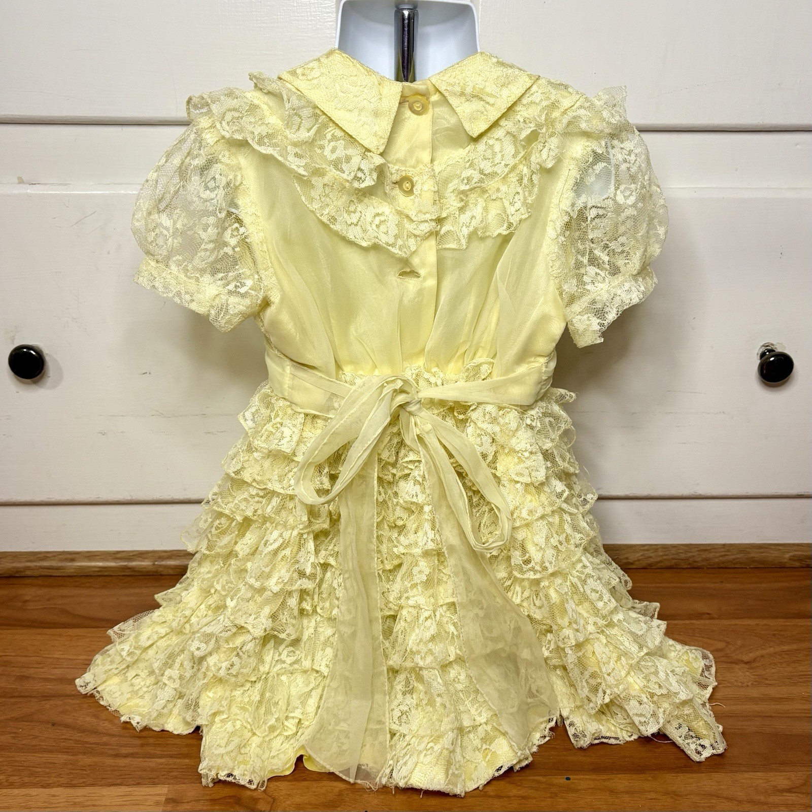 Vintage 70s Toddler Girls Yellow Frilly Ruffled Lace Circle Party Dress