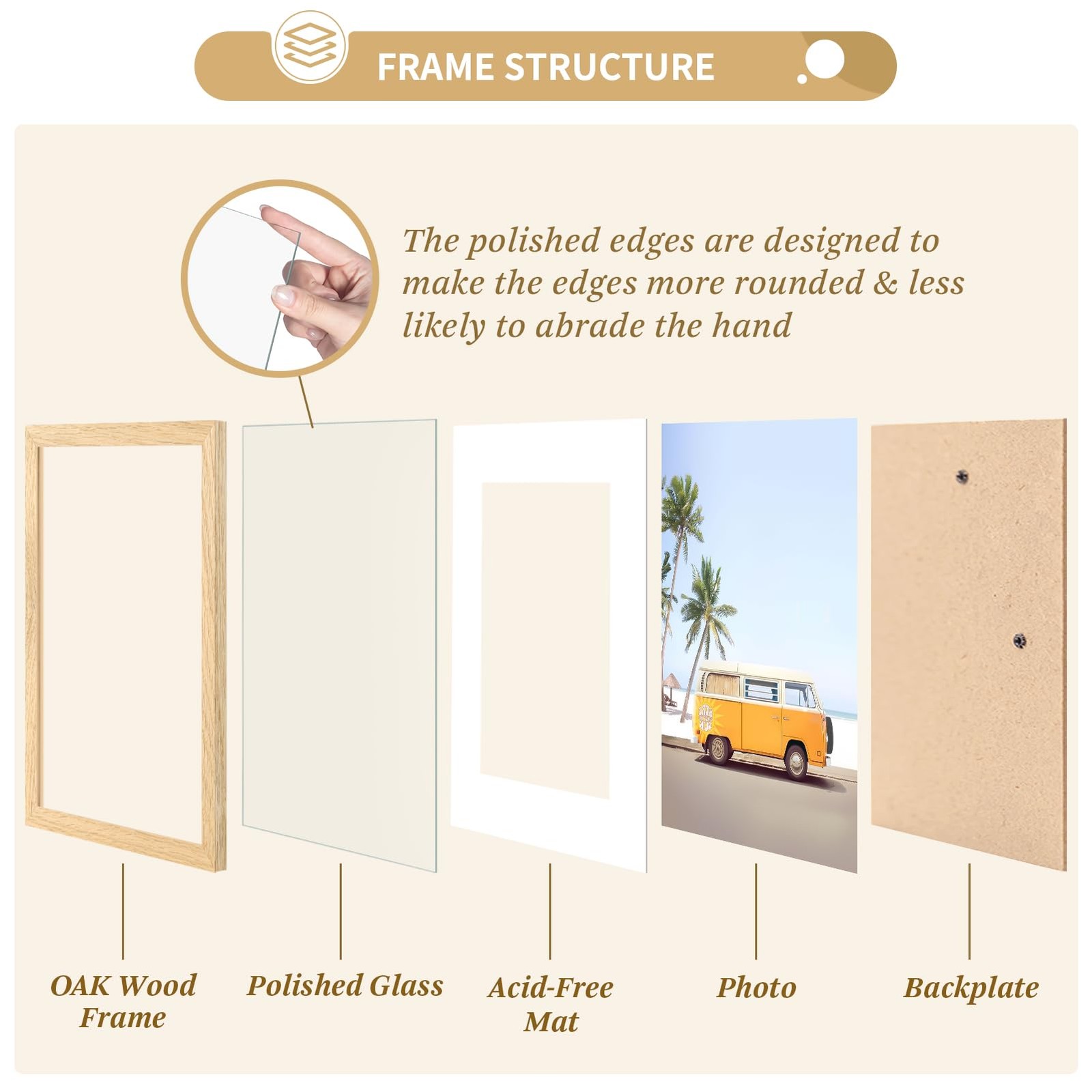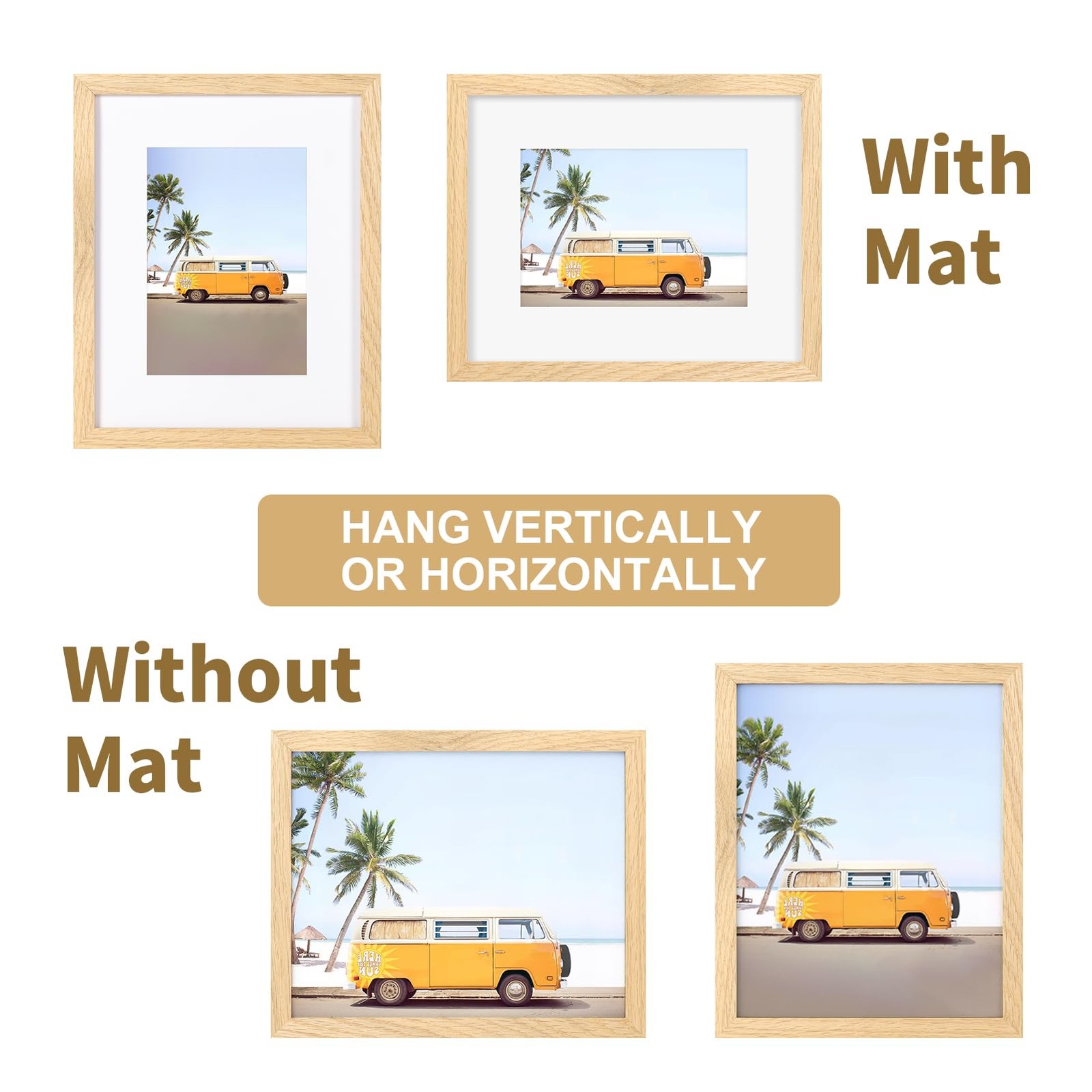 как выглядит 8x10 Solid Oak Picture Frame Set of 4 - Photo Frame 5x7 with Mat or 8x10 with... фото