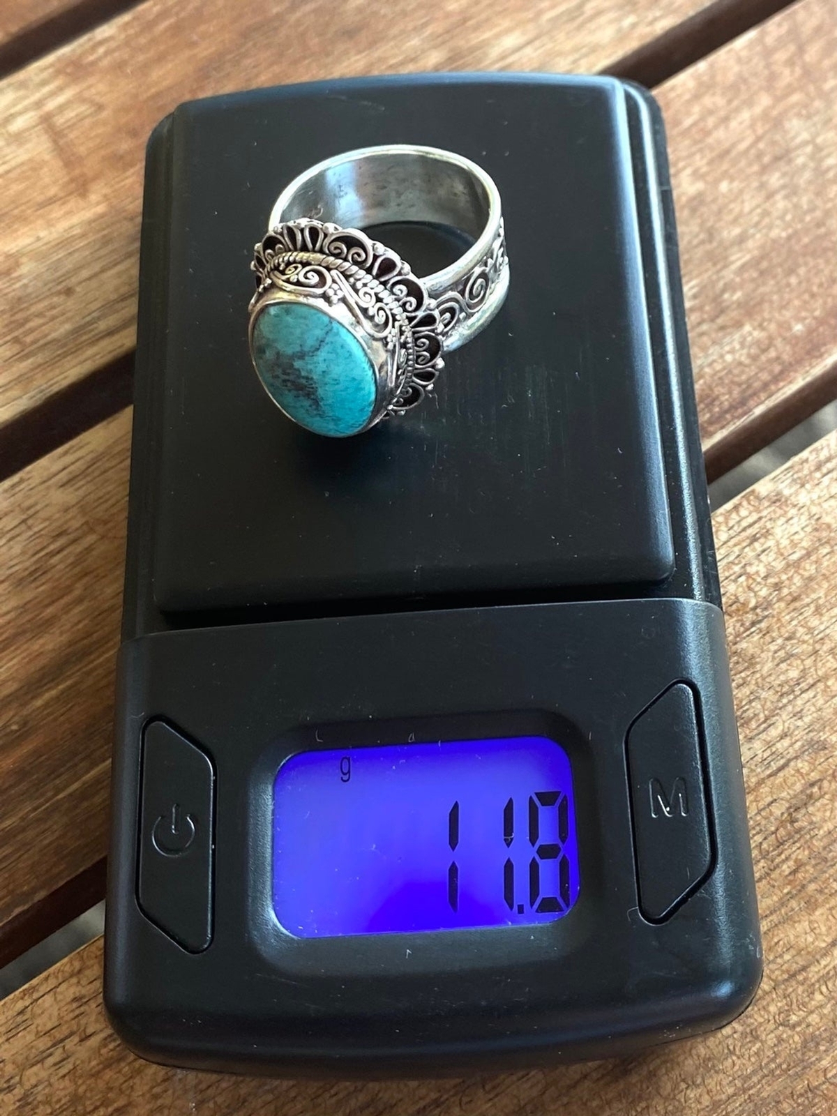 как выглядит Sterling Silver 925 Turquoise Filigree Statement Ring Sz 8.75 фото