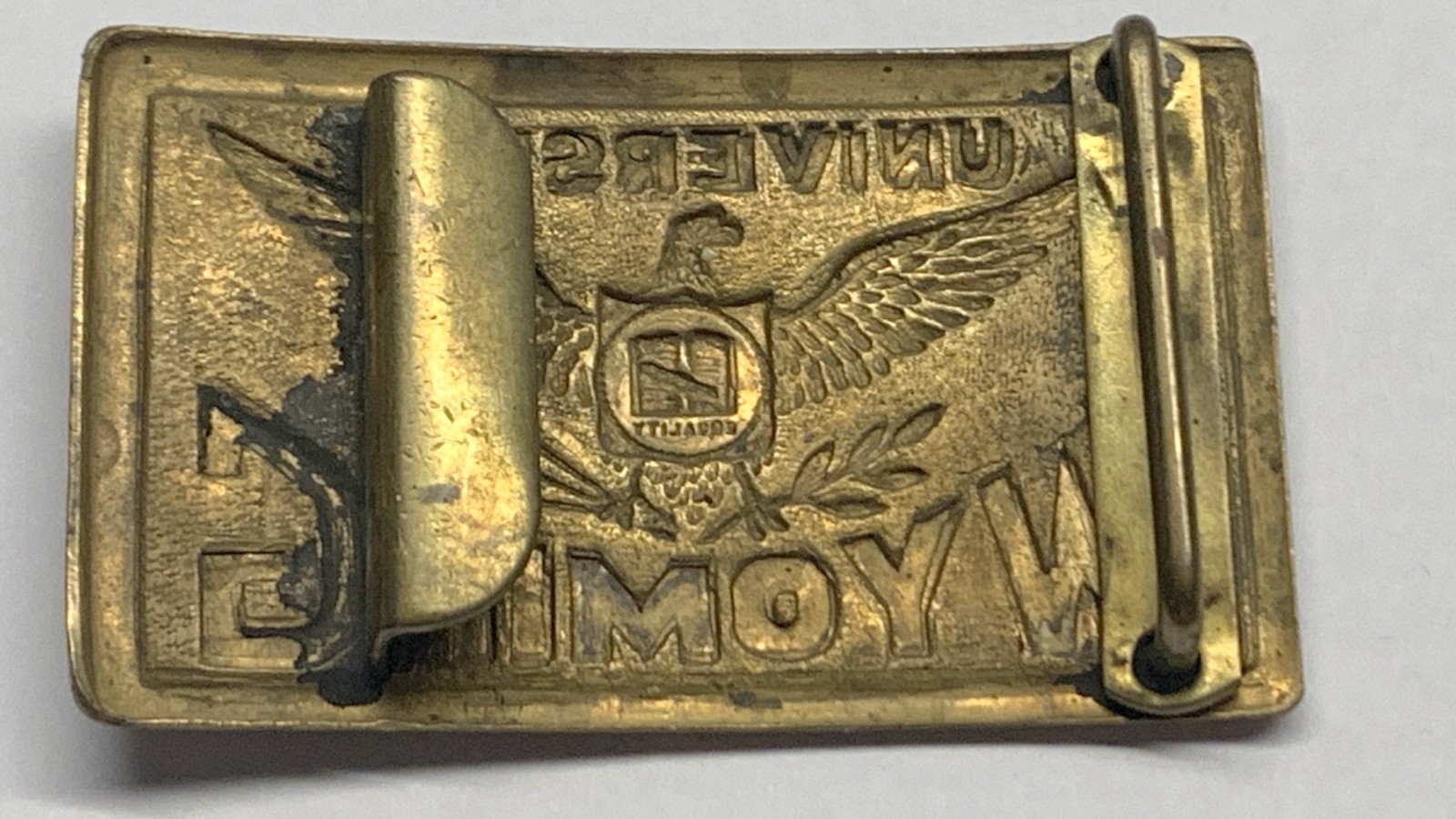 Vintage University Of Wyoming Belt Buckle Eagle Equality 1950s Pressed Brass