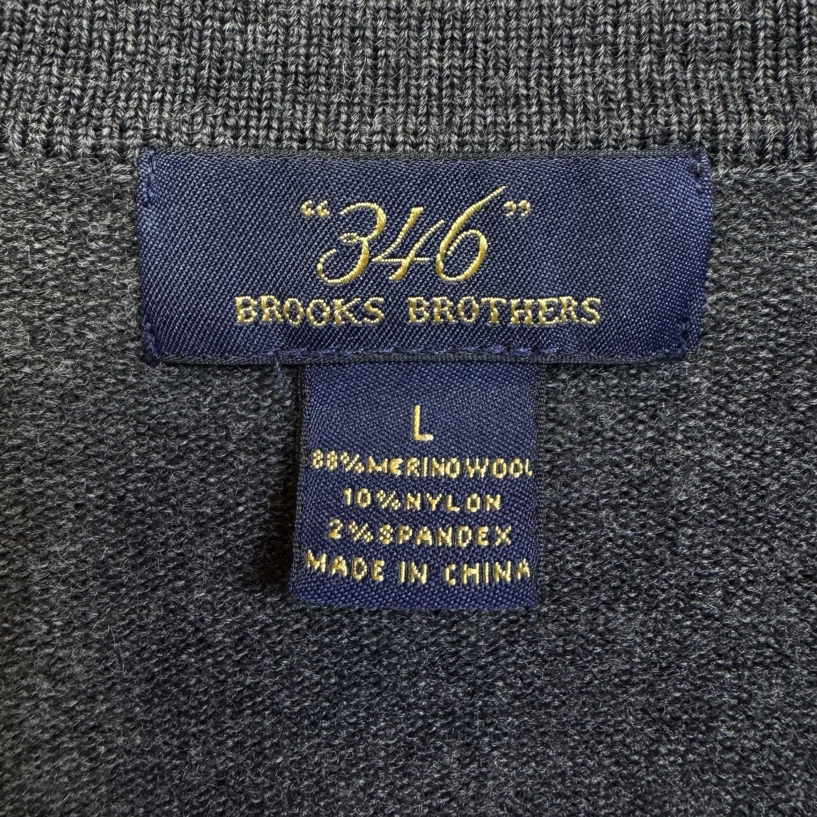 Brooks Brothers Mens Large Merino Wool Blend V-Neck Sweater Gray Quiet Luxury