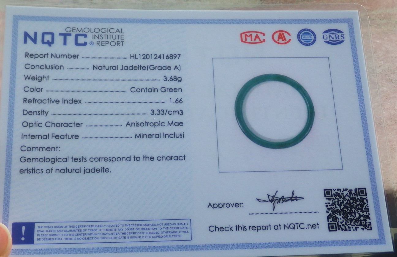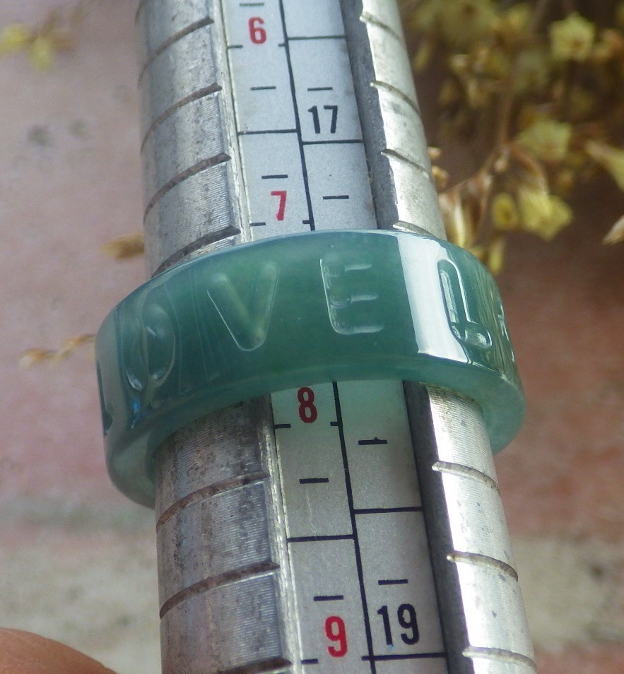 Video Certified Icy Green 100 A JADE Jadeite Love RING USA. 8 713494 AS