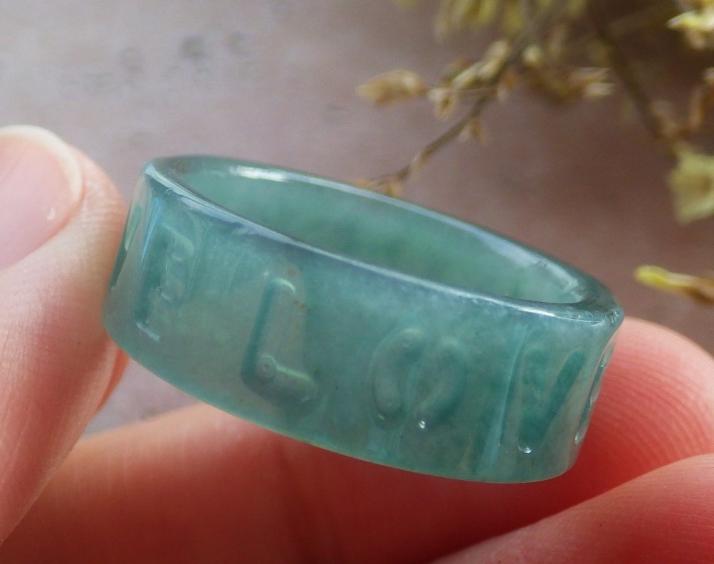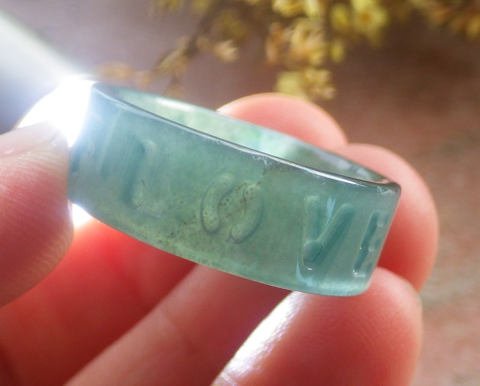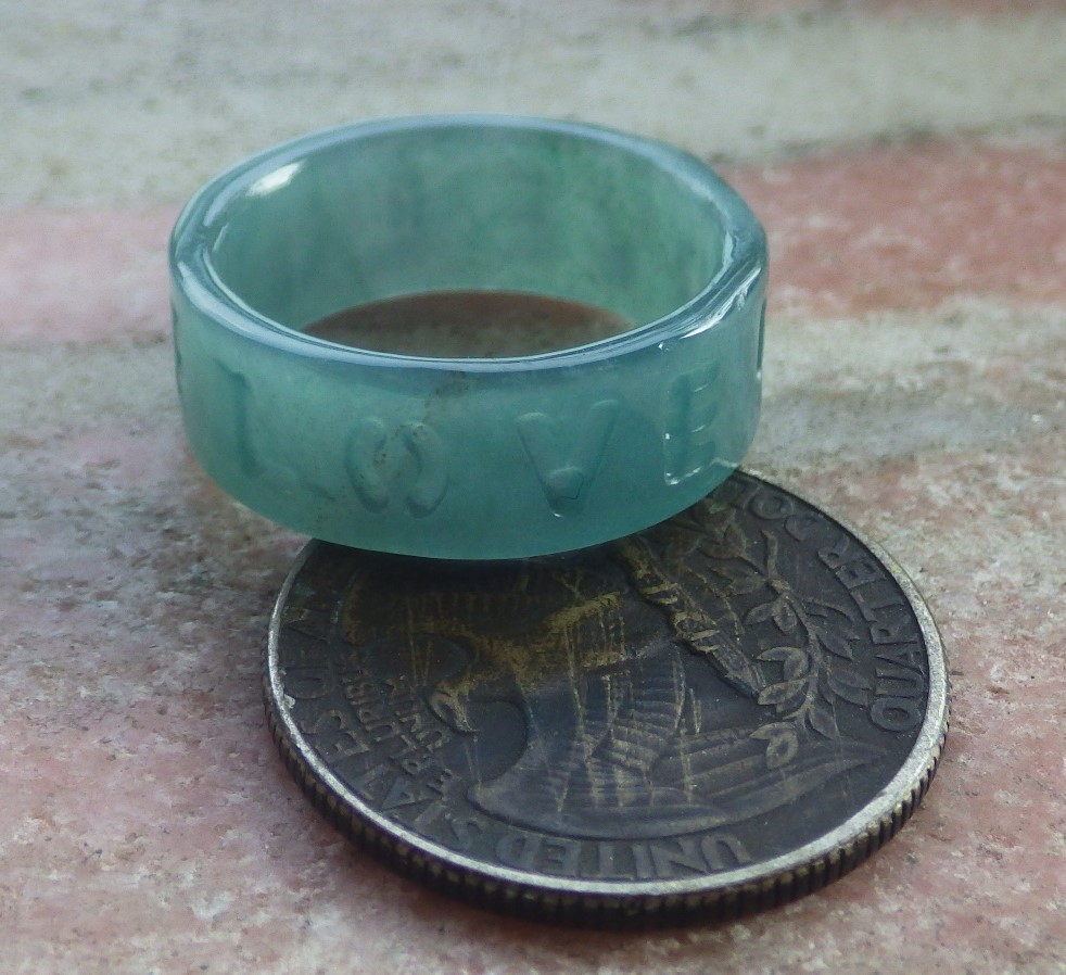 как выглядит Video Certified Icy Green 100 A JADE Jadeite Love RING USA. 8  713494 AS фото