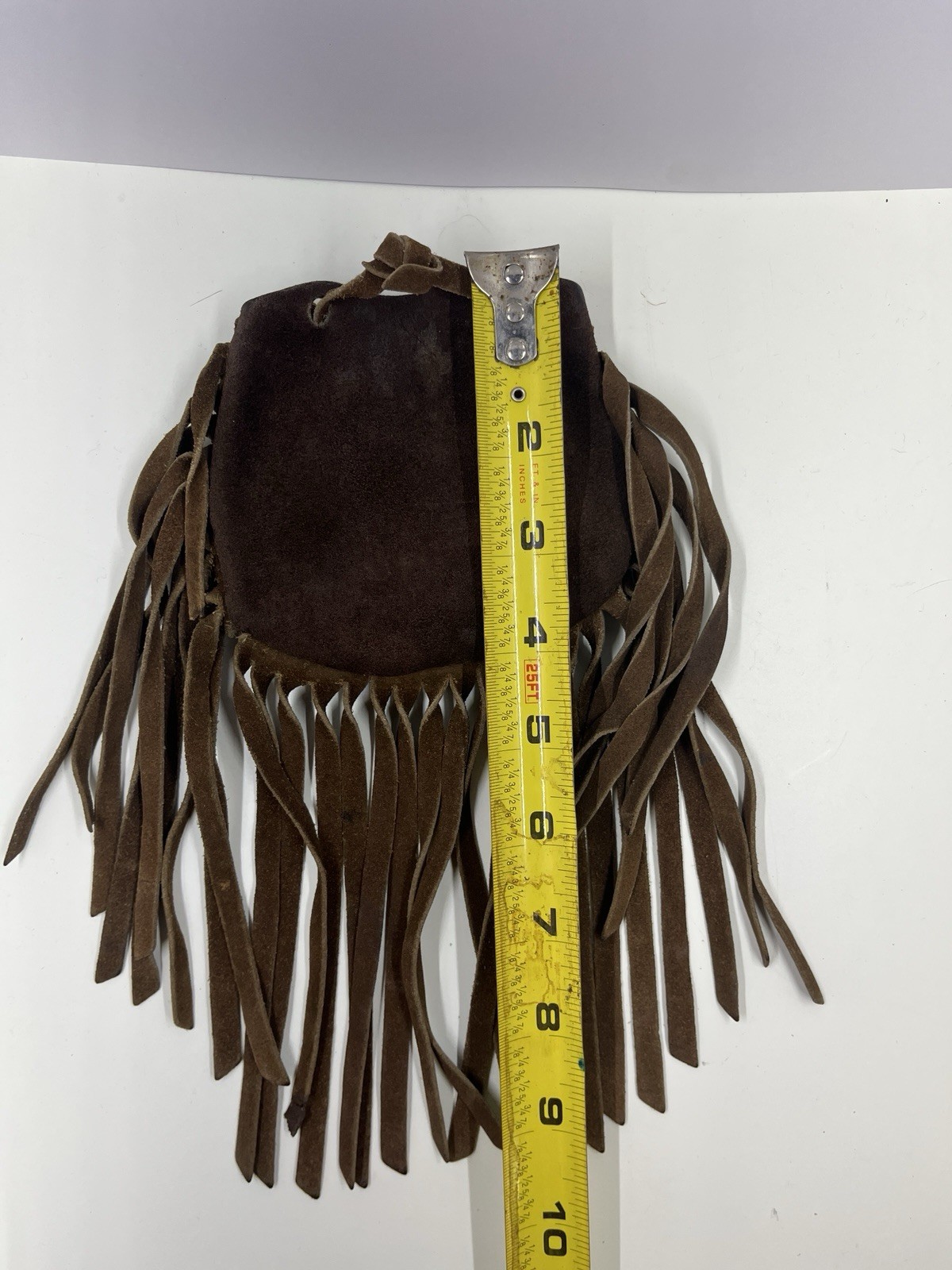 Vintage Brown Suede Leather Drawstring w/ Fringe Pouch Bag