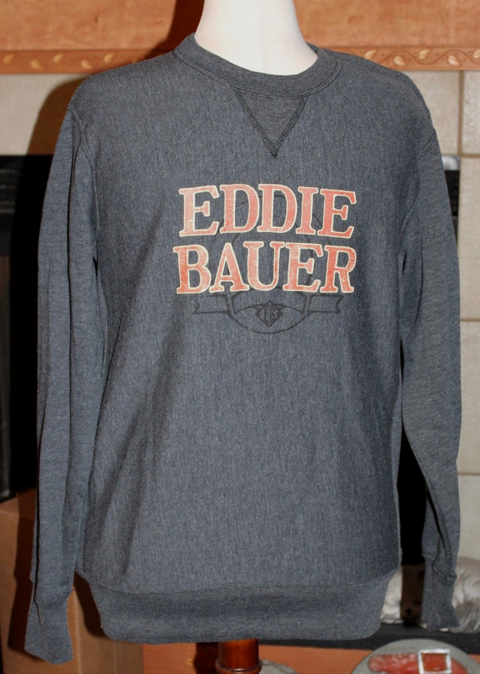 как выглядит NWOT Mens Eddie Bauer Logo Heather Charcoal Gray Classic Fleece Crew Sweatshirt фото