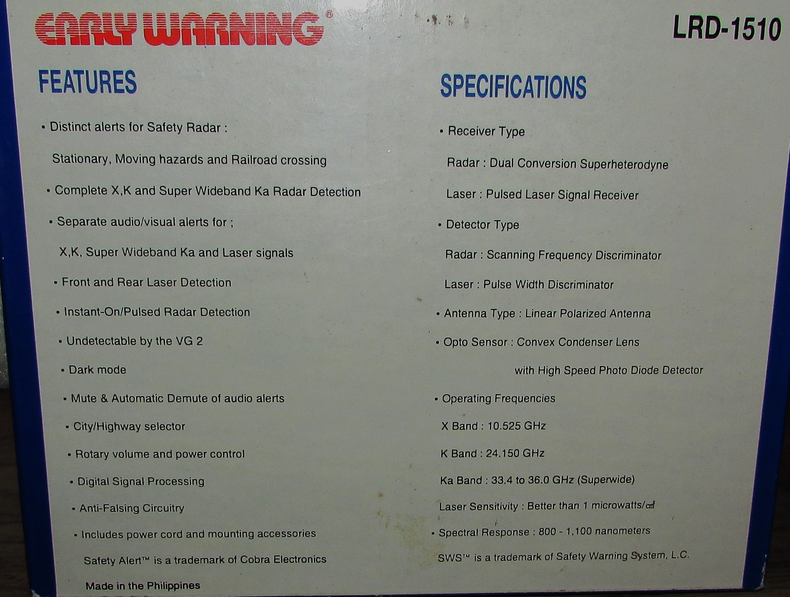 SWS LRD-1510 SUPER WIDE BAND Ka FRONT / REAR LASER DETECTOR, NOS, NEW-OPENED BOX