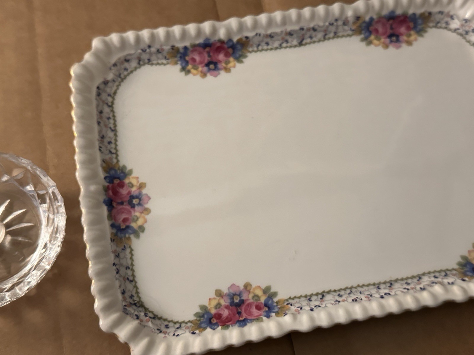 Vintage Porcelain Jewelry Tray Glass Ring Holder