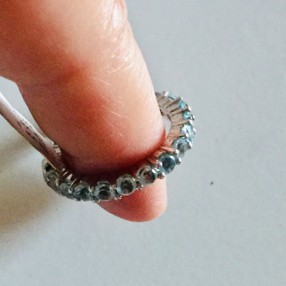 как выглядит STERLING SILVER BLUE TOPAZ ETERNITY BAND RING SIZE 7 NWT фото