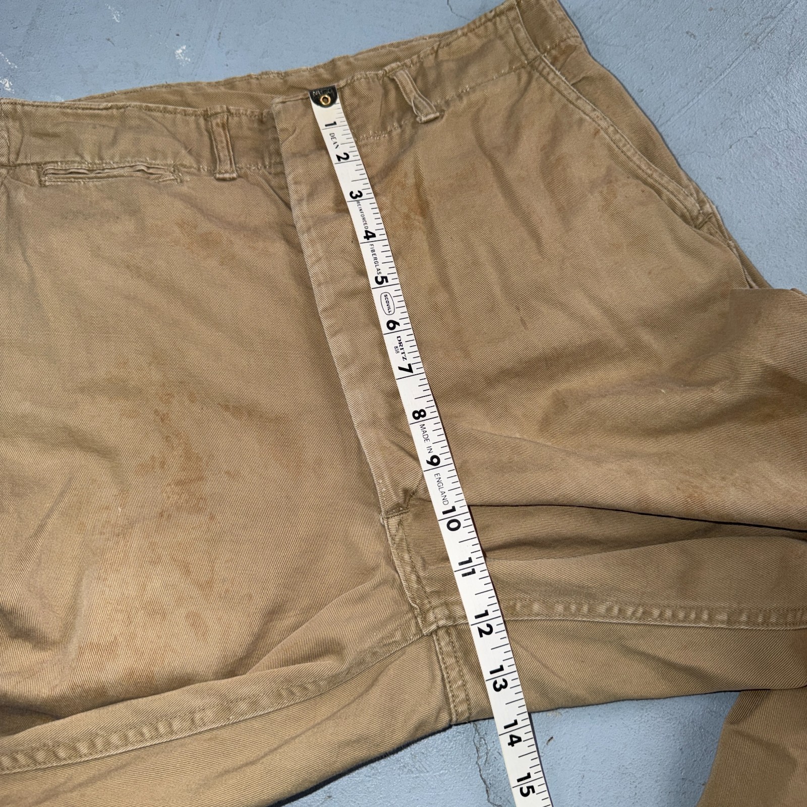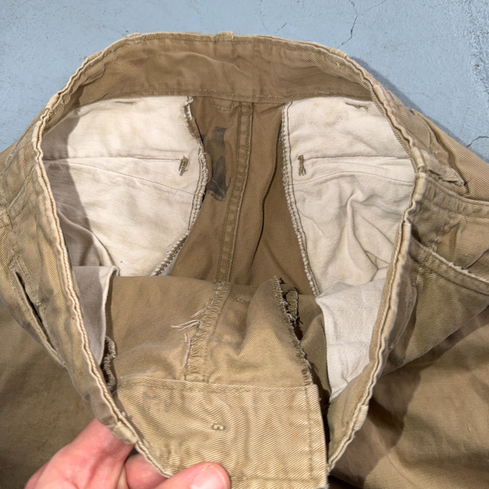 как выглядит VTG 40s WWII Button Fly Cotton Military Trousers Chino Khaki Distressed 28x31 фото