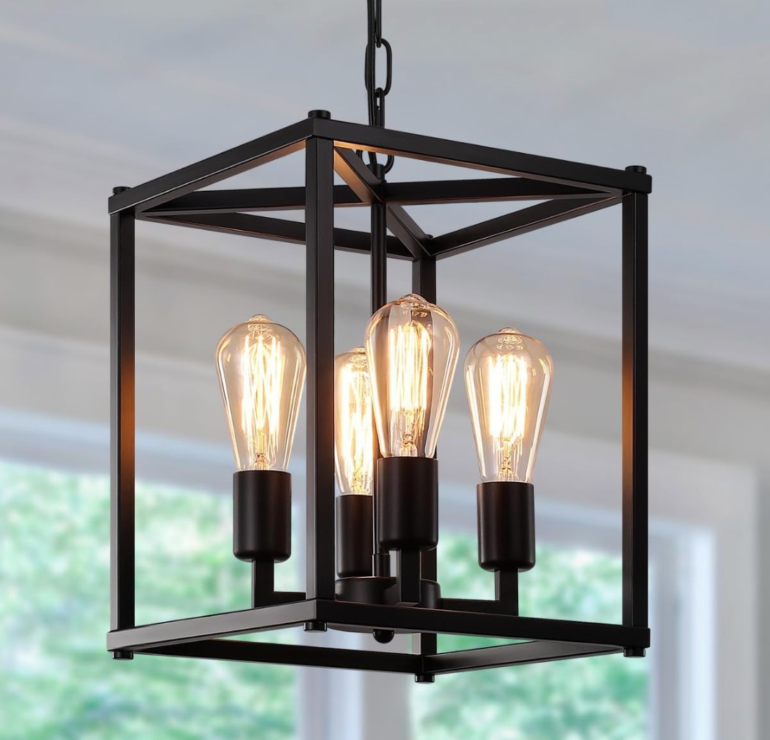 Black Farmhouse Chandelier Dining Room Light Fixtures, 4-Light Chandelier NEW