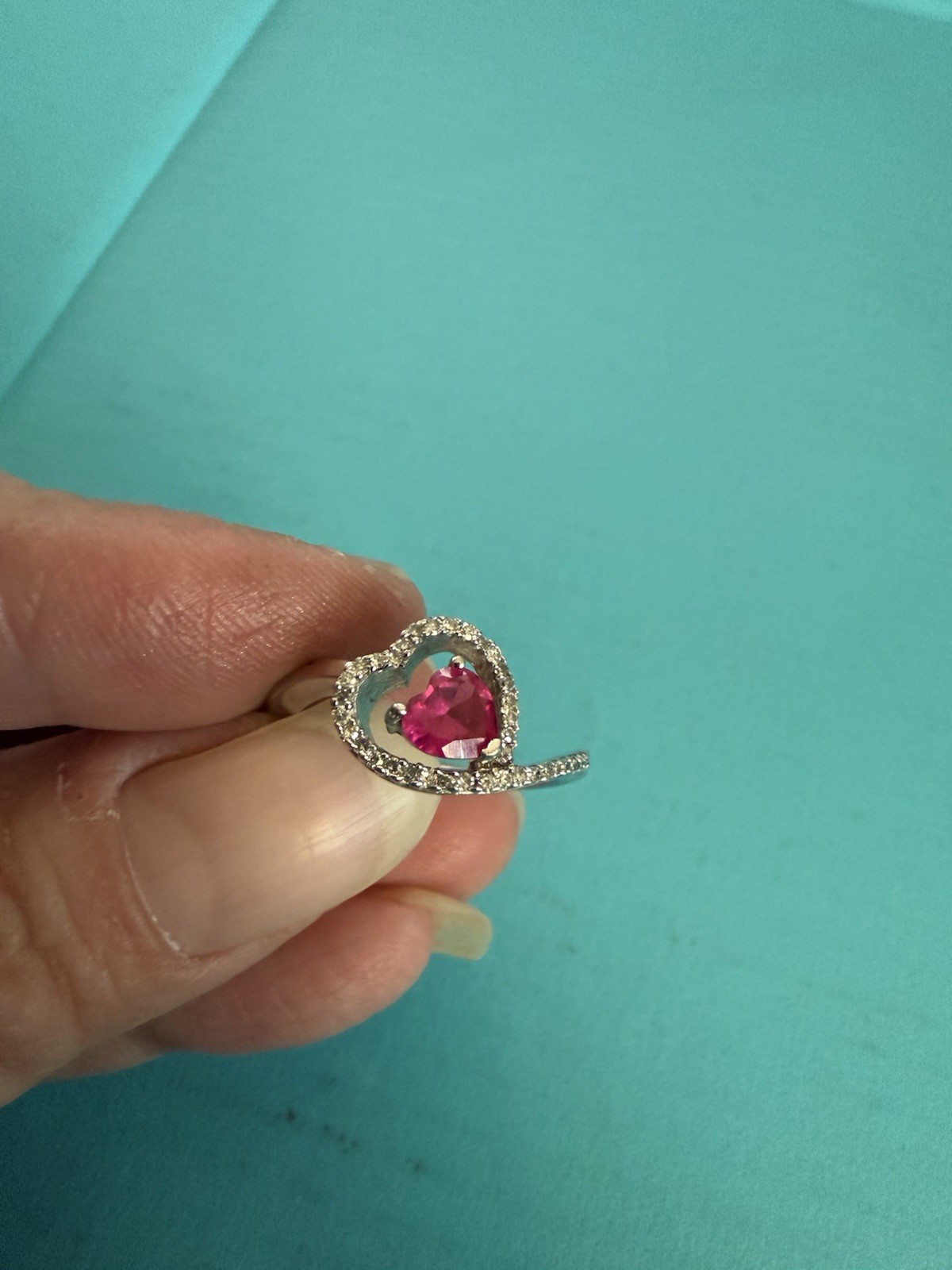 Sterling silver pink sapphire lab created heart ring With Diamonds