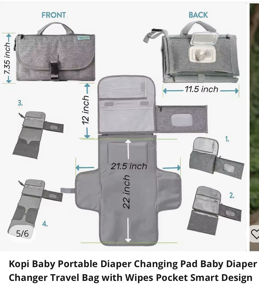 как выглядит Kopi Baby Portable Diaper Changing Pad Gray, with Compartments for Items фото