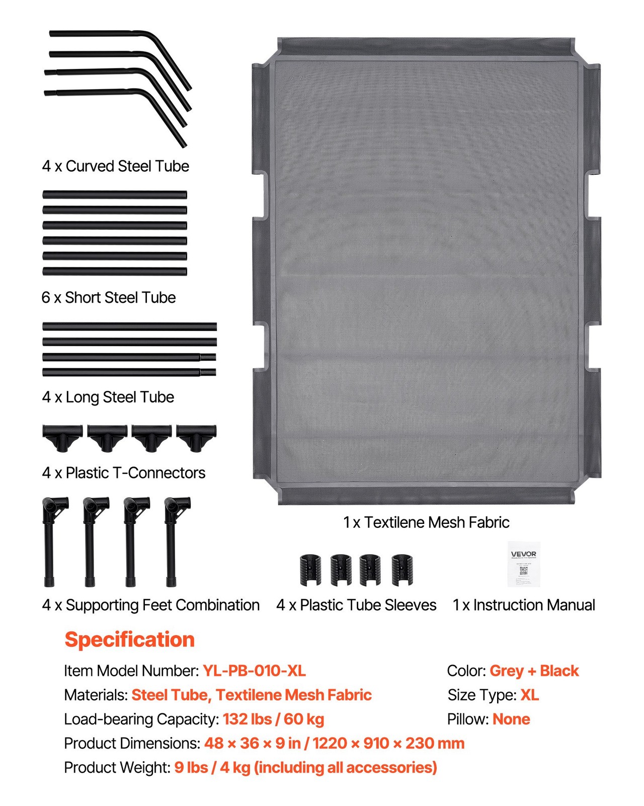 HOT/ Elevated Dog Bed for Large Dogs,Portable Raised Dog Cot with Steel Metal F