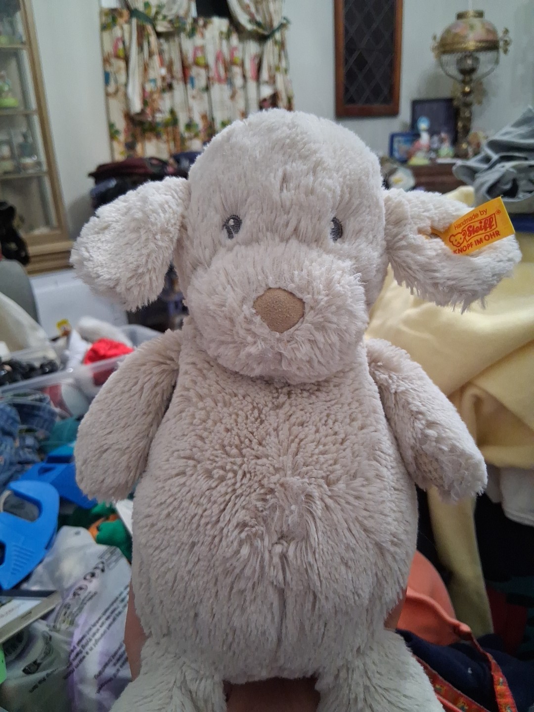 как выглядит STEIFF Baster Puppy Dog 240591 Light Gray 12" Plush Soft Cuddly Friends фото