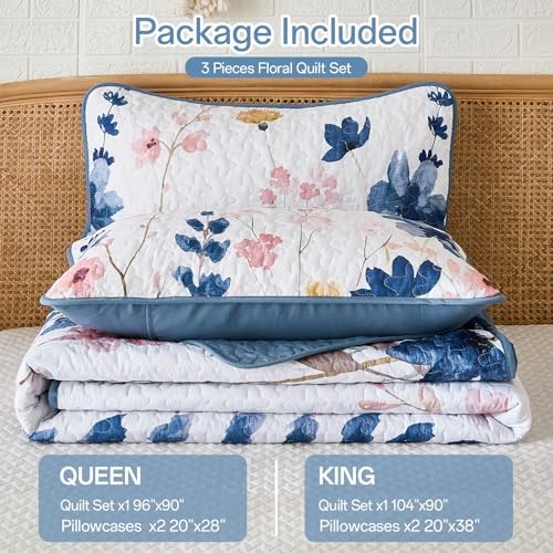Quilt Set Floral Bedspread Soft Microfiber Lightweight Size King Dark Blue