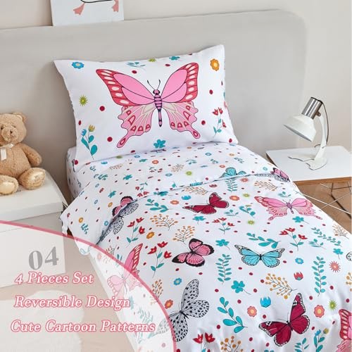 4-Piece Girls Butterfly Bedding in Pink Floral - Toddler 4pcs White-butterfly