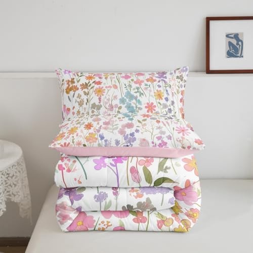 Cute Pink Floral Bedding Set for Girls Kids Women,Colorful Boho Twin Orange