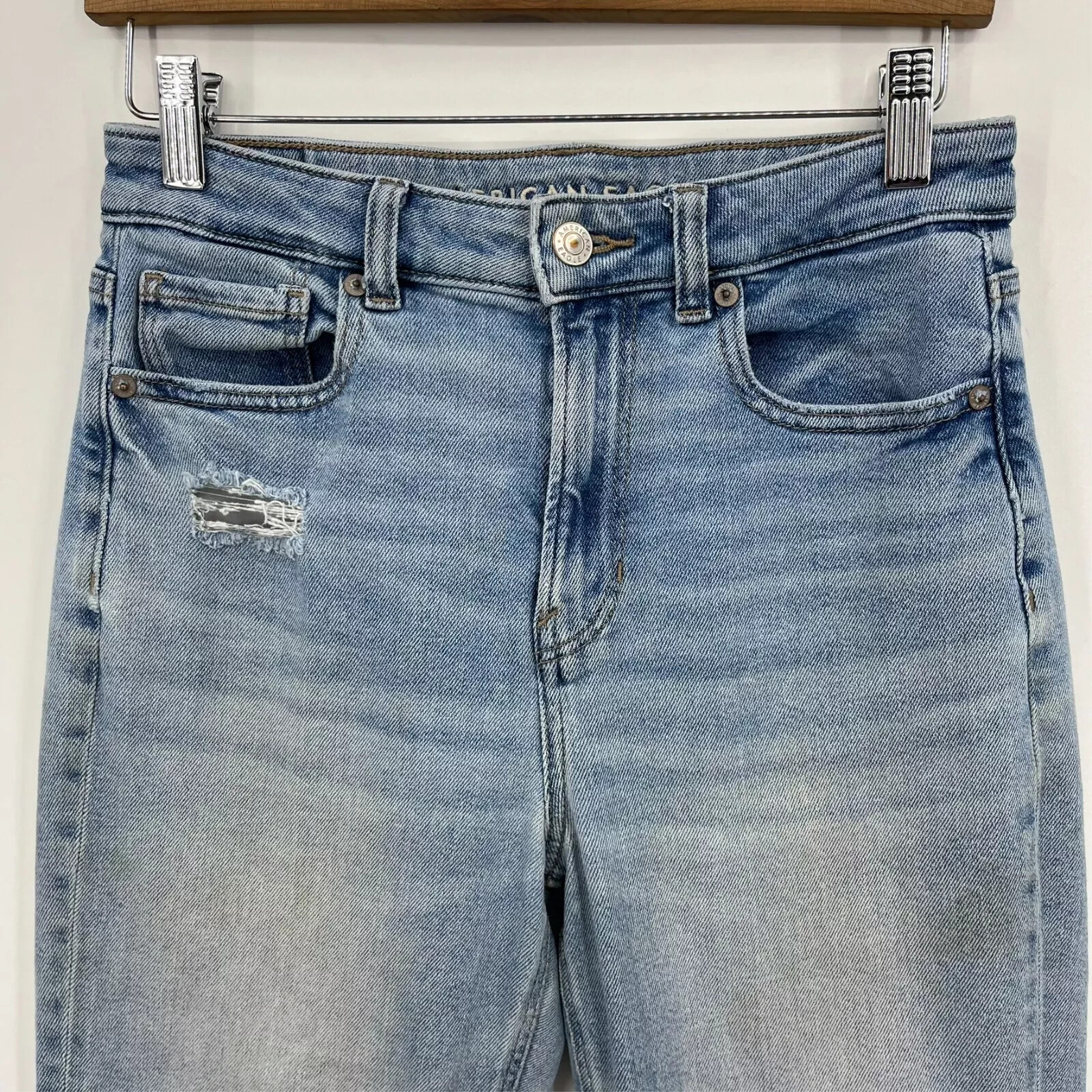 American Eagle Jeans Women's Size 4 Blue Mom Jean High Rise Straight Light Wash