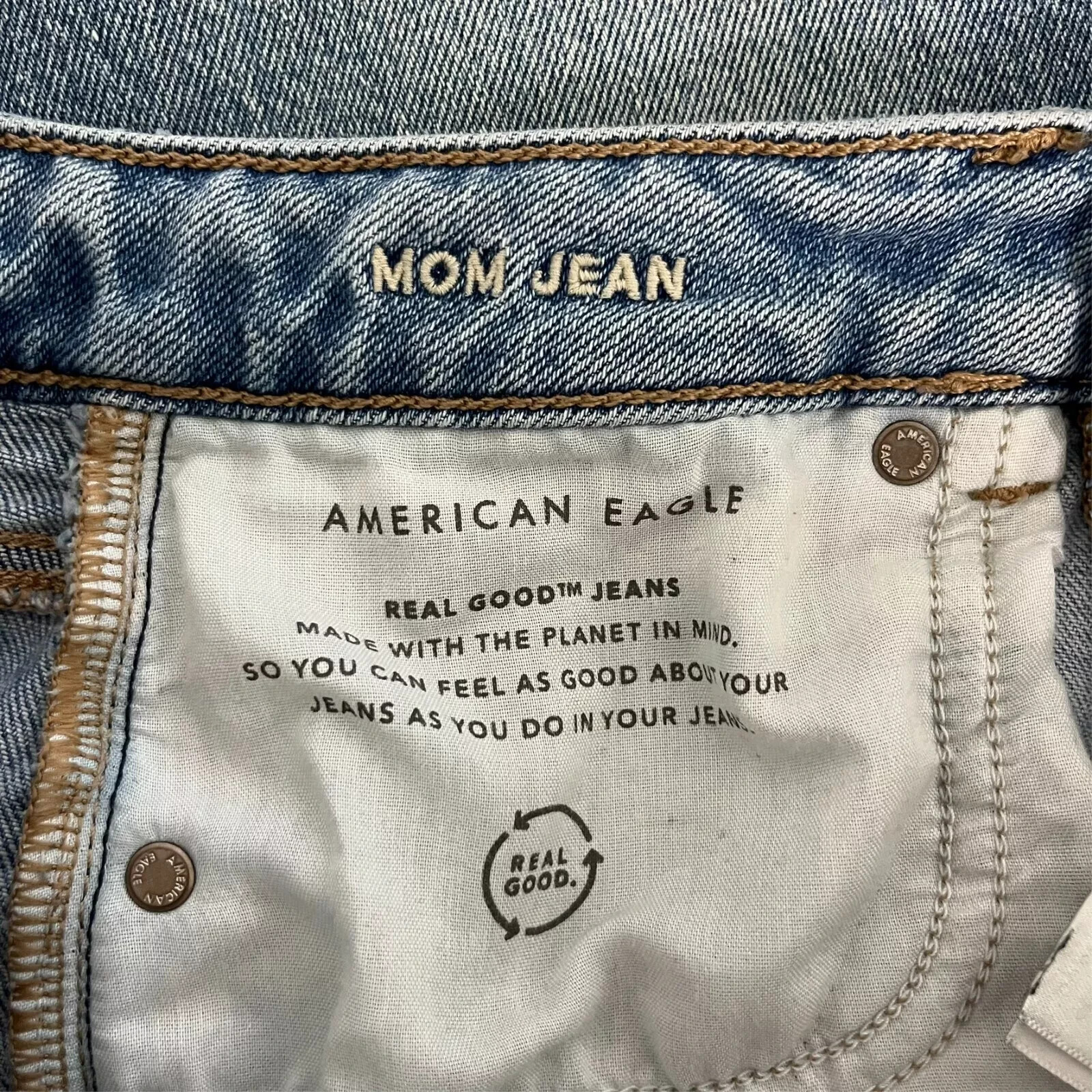 как выглядит American Eagle Jeans Womens Size 4 Blue Mom Jean High Rise Straight Light Wash фото