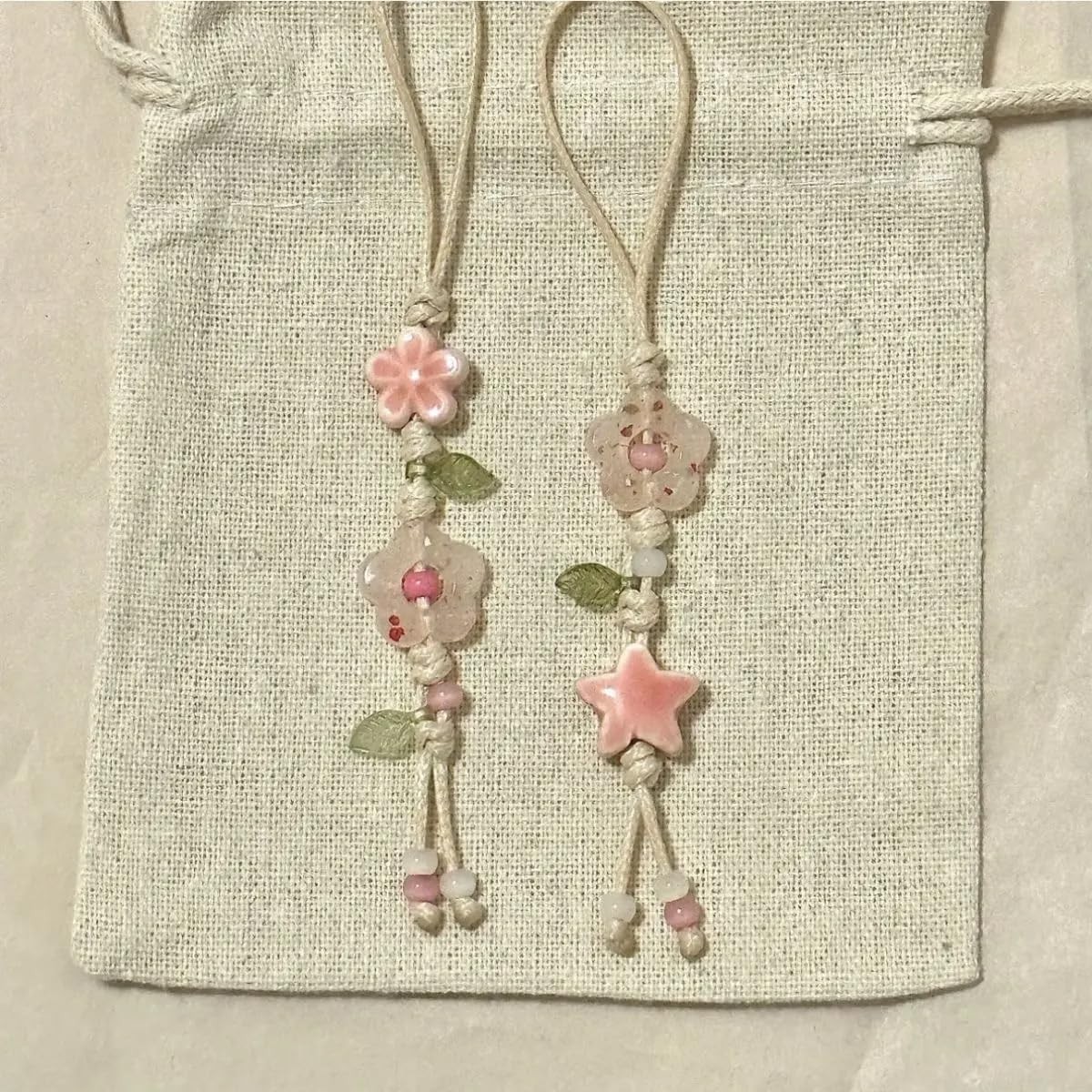 Cute Flower Phone Charm Kawaii Y2k Pink Ceramic Star Leaf Floral Phone Camera Ba