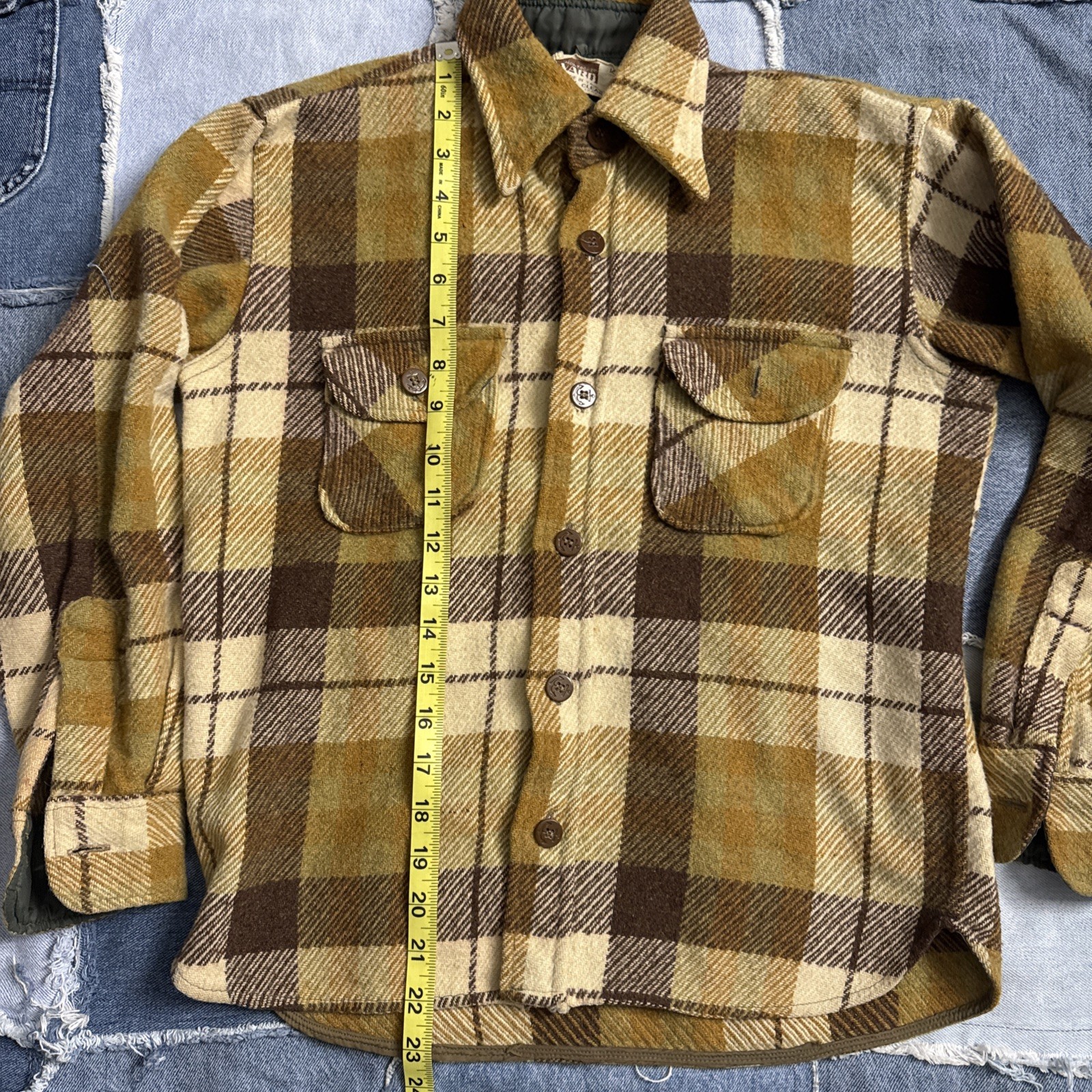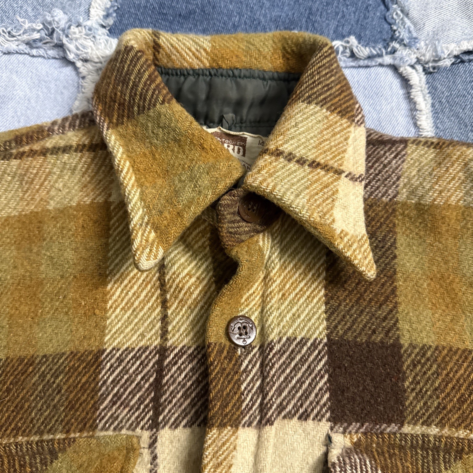 как выглядит Vintage 70s Montgomery Ward Cotton Flannel Youth 14 Adult S Yellow Button Up фото