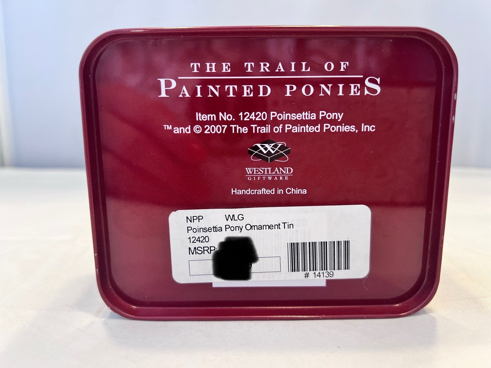 2007 Trail of Painted Ponies POINSETTIA PONY Ornament Tag Tin Box 12420