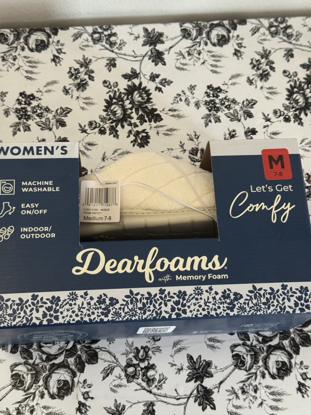 NEW Dearfoams Memory Foam Women's Slippers, Cream, Size M 7-8
