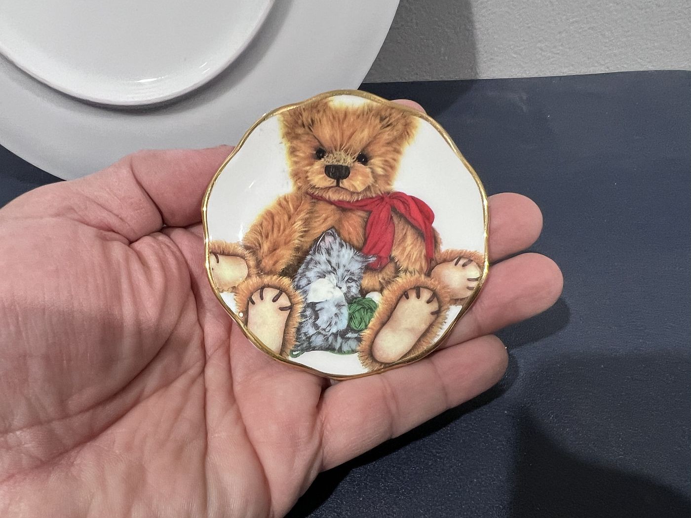 как выглядит Steiff Bear Collectors Plate 1996 Tiny Teddy Bear Cat Fenton Staffordshire фото