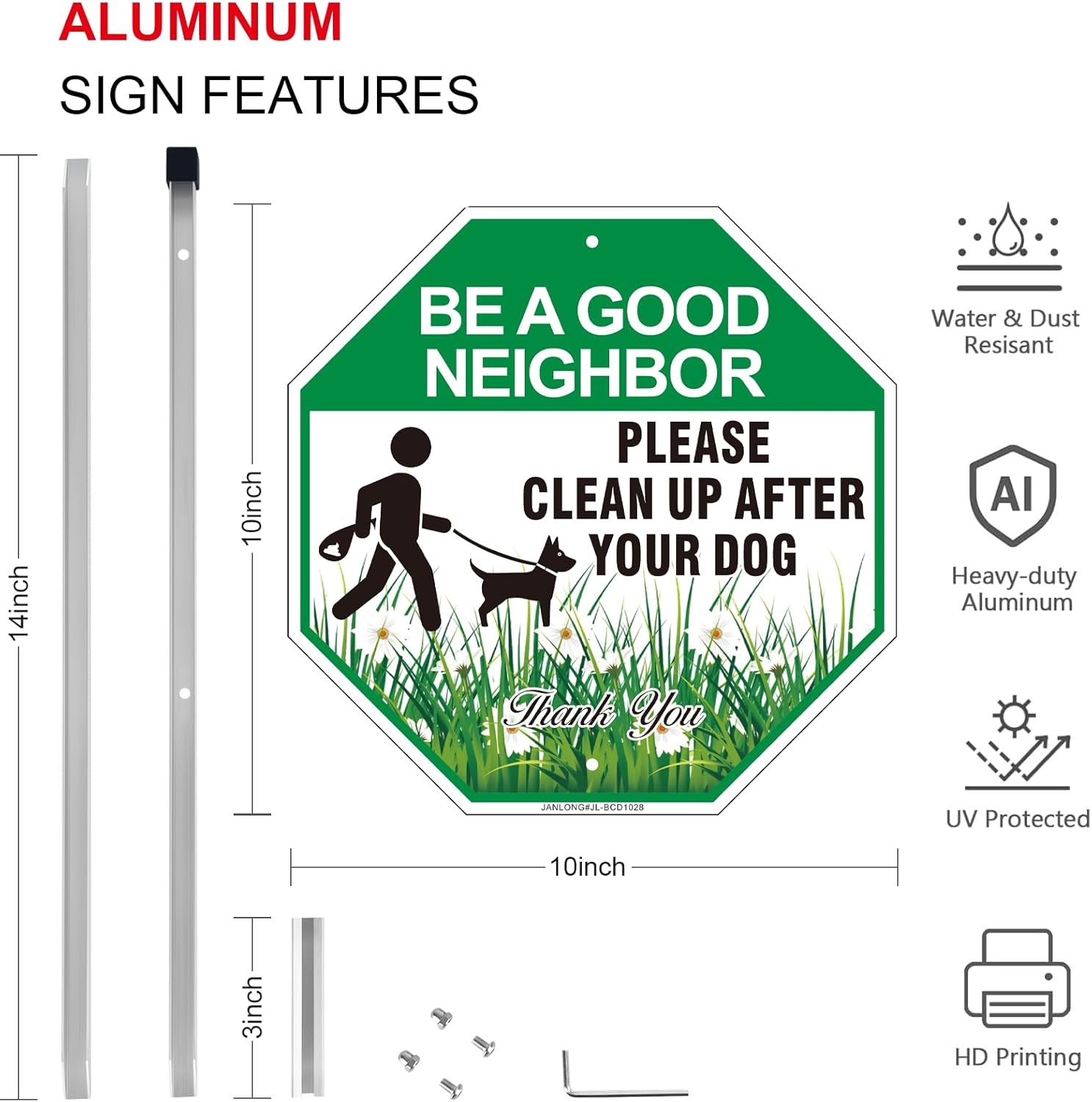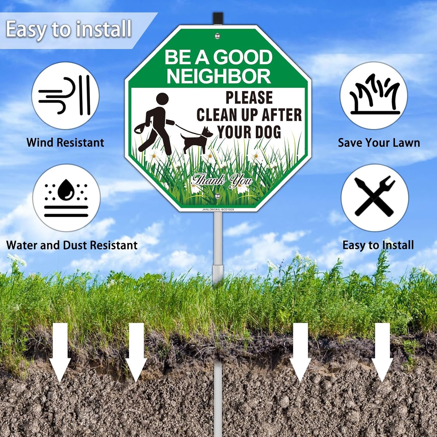 2 Pack Clean up after Your Dog Aluminum Sign with 28 Stake Be a Good Neighbor