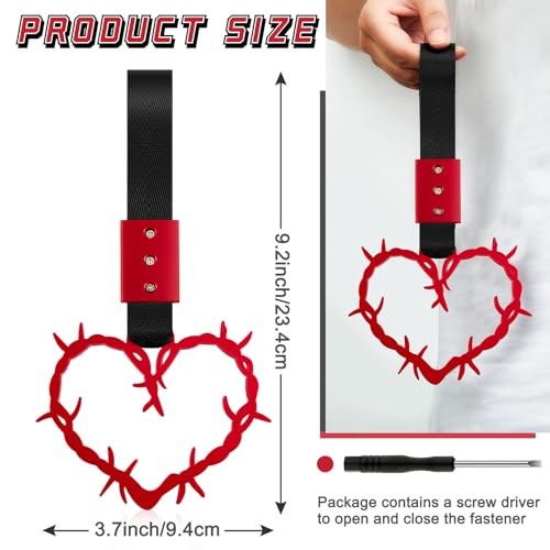 как выглядит 4 Pieces Heart Handle Keychains Car Accessory Heart Hand Strap Drift Red Thorns фото