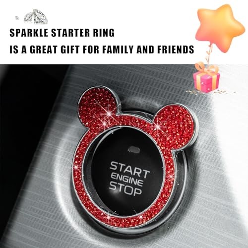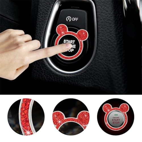 Augeny Bling Car Engine Start Button Cover, Rhinestone Key Ignition 1PC Red