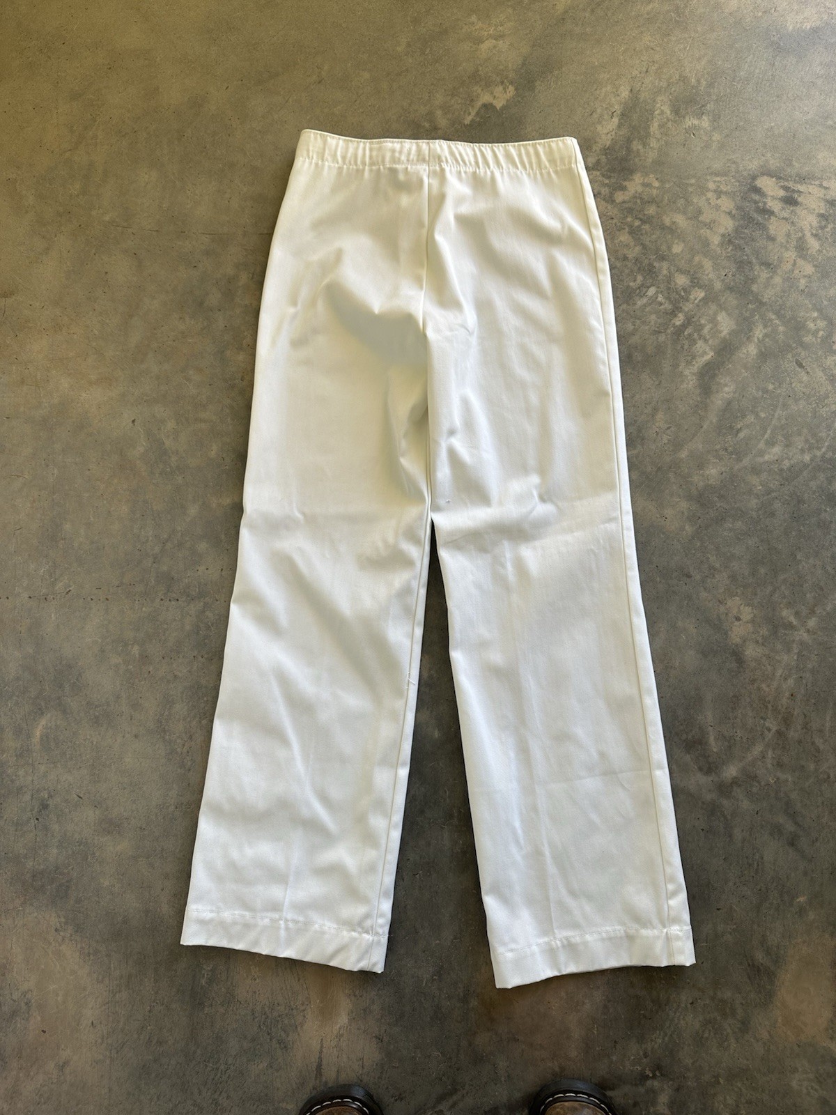 как выглядит Vintage 80s Button Fly White Wide Leg Flare Uniform Pants Women