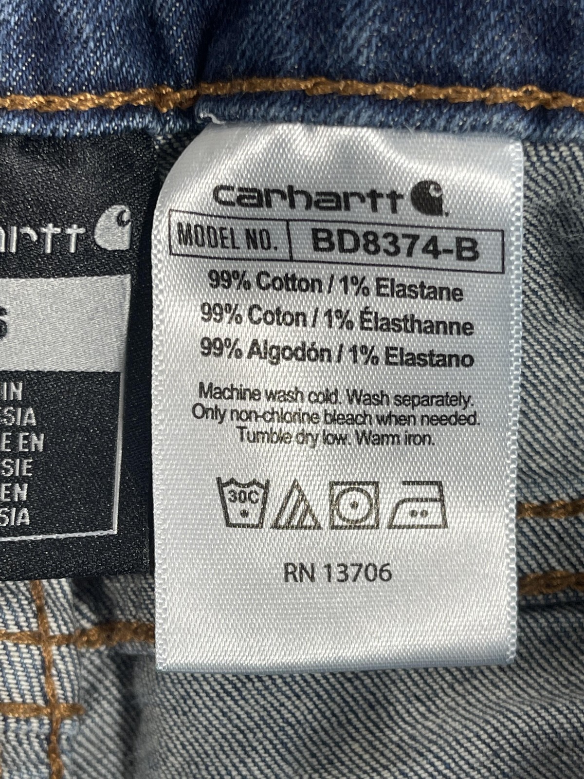 как выглядит Carhartt Jeans Youth 16 Denim Straight Leg Adjustable Waist Zip Fly BD8374-B фото