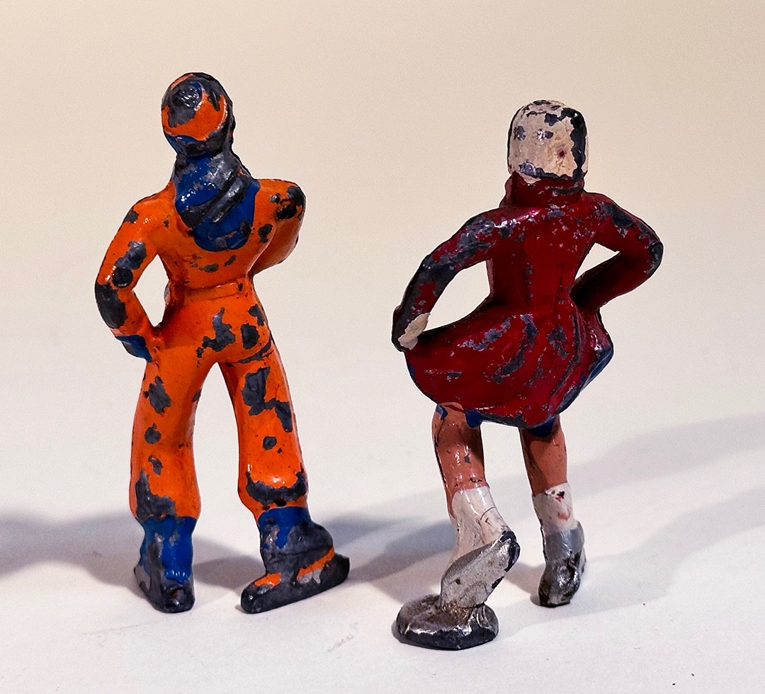 Four miniature painted lead figures - ICE SKATERS