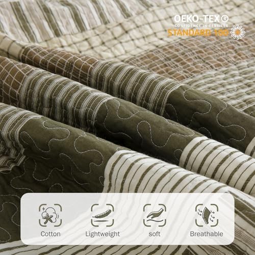 100 Cotton Quilts Queen Size - 3 Piece Striped Queen 90x98 Brown Moonbean