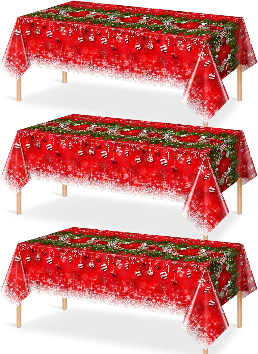 3Pcs Christmas Party Tablecloth Decorations,Red Plastic Christmas Ornament Candy