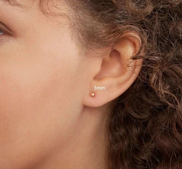 Tiny Stud Earrings for Women,Dainty Mini Ball Earrings for 3mm Ball Gold