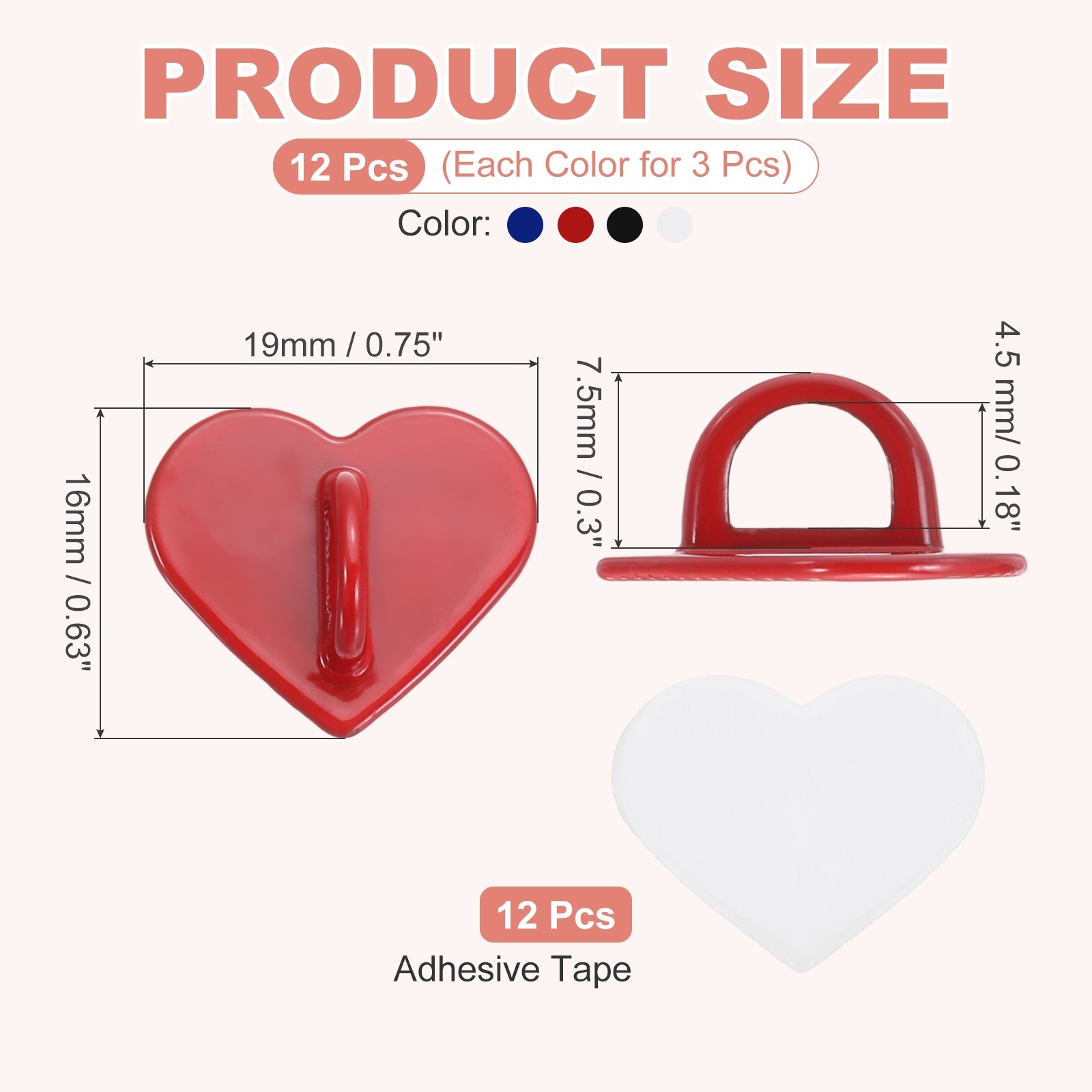 12 Pcs Heart Phone Charm Hook, Red/Deep Blue/White/Black