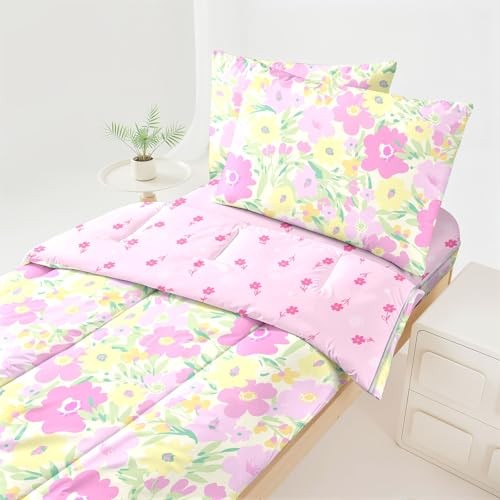 как выглядит Zipper Bedding Girls Pink Floral Bedding for Girls Twin Dal-clb-flower 04 фото