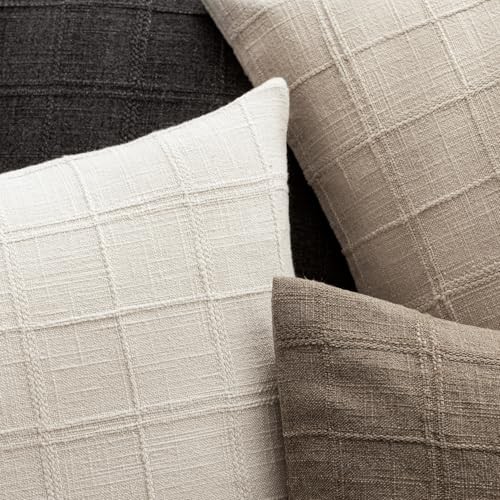 Set of 2 Decorative Linen Check Throw 18 x 18 Pack of 2 Natural Linen