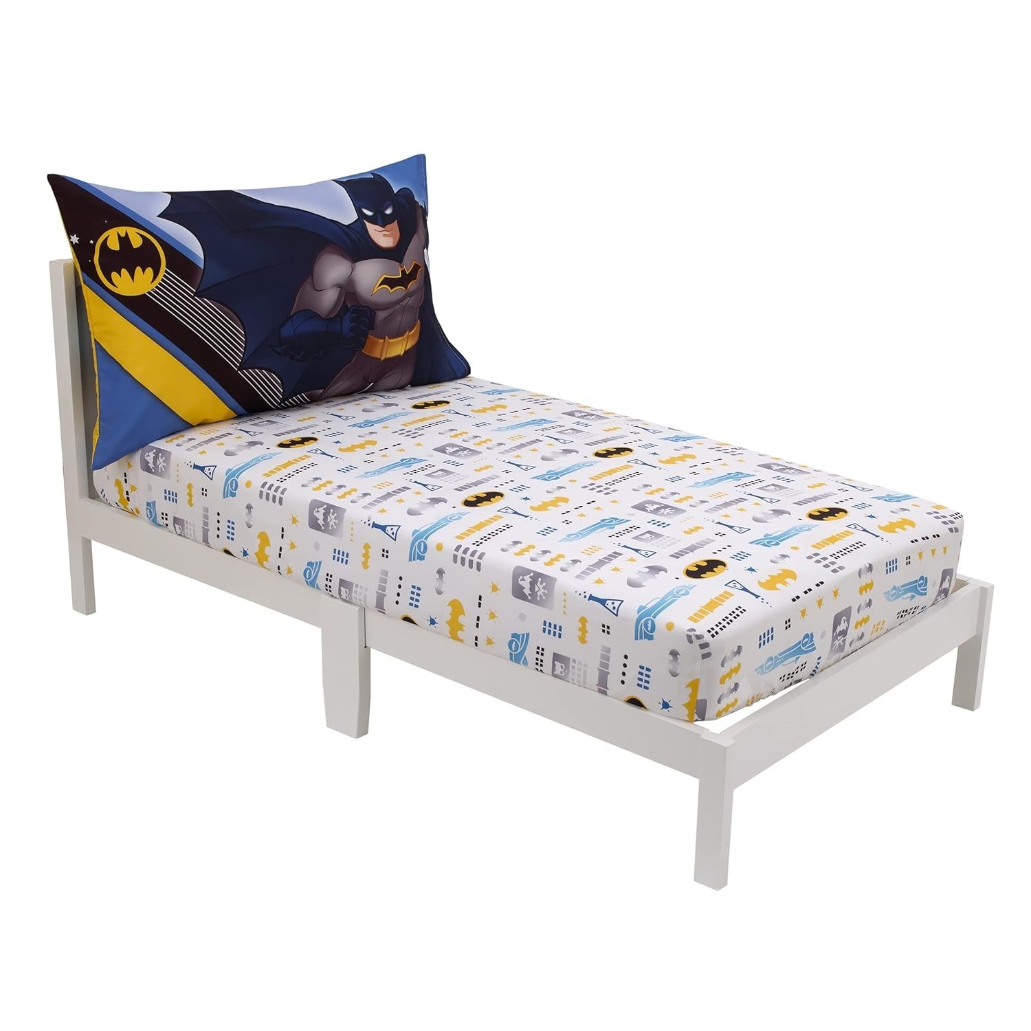 Fitted Toddler Sheet Set with Batman Design Reversible Pillowcase - 28x52 Size