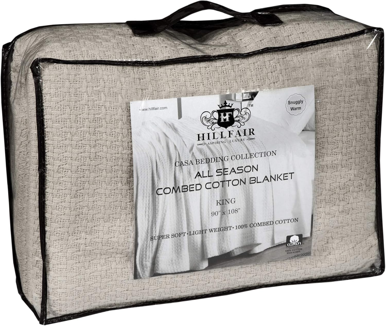 100 Combed Cotton King Blanket 90 X 108 Inch Soft Warm Throw Sand Grey